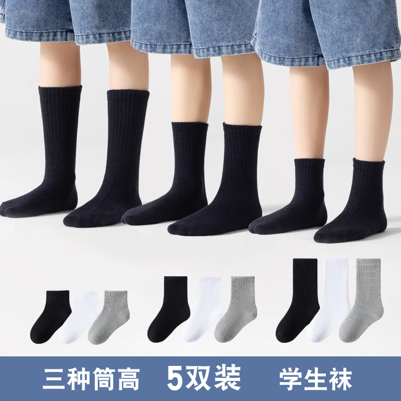 白の中筒靴下の学生の靴下の白黒の灰色の綿の子供の靴下の純色の男女の子供の春秋の百合の子供の靴下