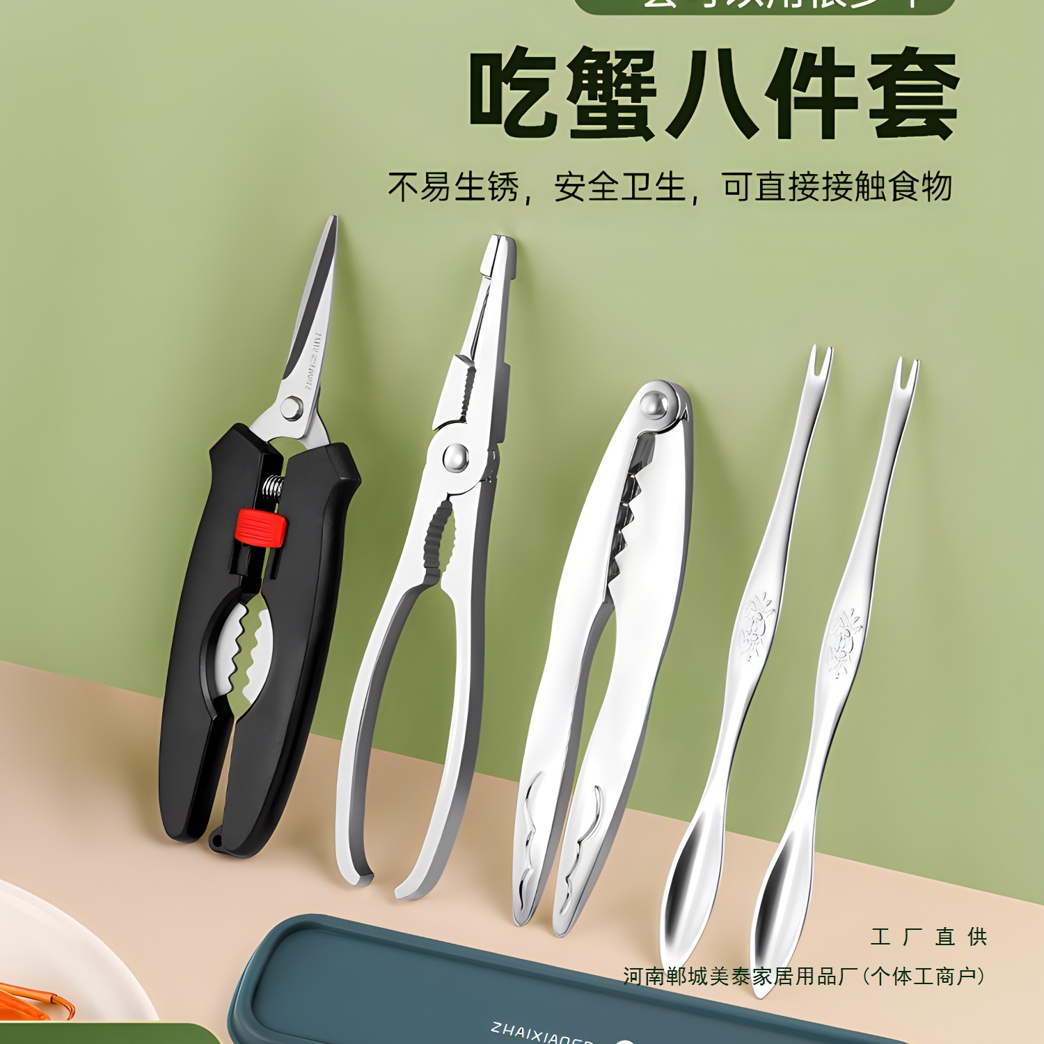 カニ8点セット、毛ガニの皮むき・食べる道具セット、カニ爪3点セット、家庭用カニはさみ