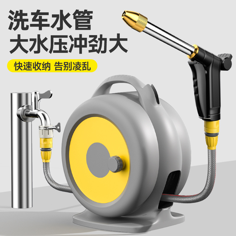 花の水やり水鉄砲、洗車水道ホース、水やり延長、自動収納、高圧家庭用洗車収納リール
