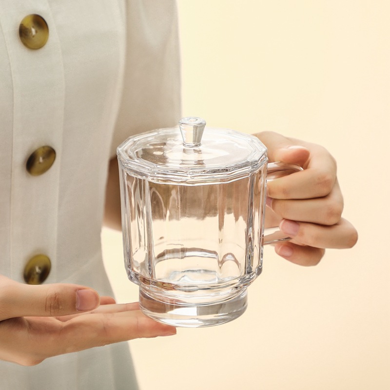 緑典北欧多稜紋グラスマグカップ創意輝かしい蓋付きガラスカップジュースカップグラス