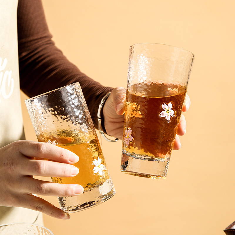 緑典ins日本式桜グラス創意清新ハンマーカップ家庭用ジュース冷飲カップ牛乳カップ