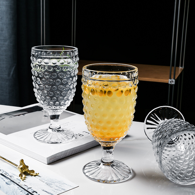 緑典ヨーロッパ式対外貿易復古レリーフリベットグラス透明ガラスコップジュースカップワイングラスセット