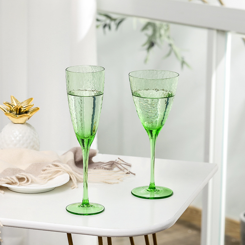 緑典創意ハンマー目紋リンゴ緑ワイングラス家庭用ガラスワイングラス高足カップシャンパンカップ