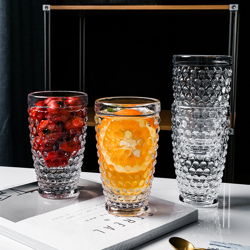 緑典ヨーロッパ式レトロレリーフリベットグラス透明ガラスコップジュースコップうがいコップコップコップセット
