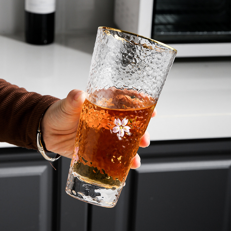 緑典日本式金辺ハンマー目紋グラス創意泡カップ家庭用牛乳ジュースカップ飲料カップ