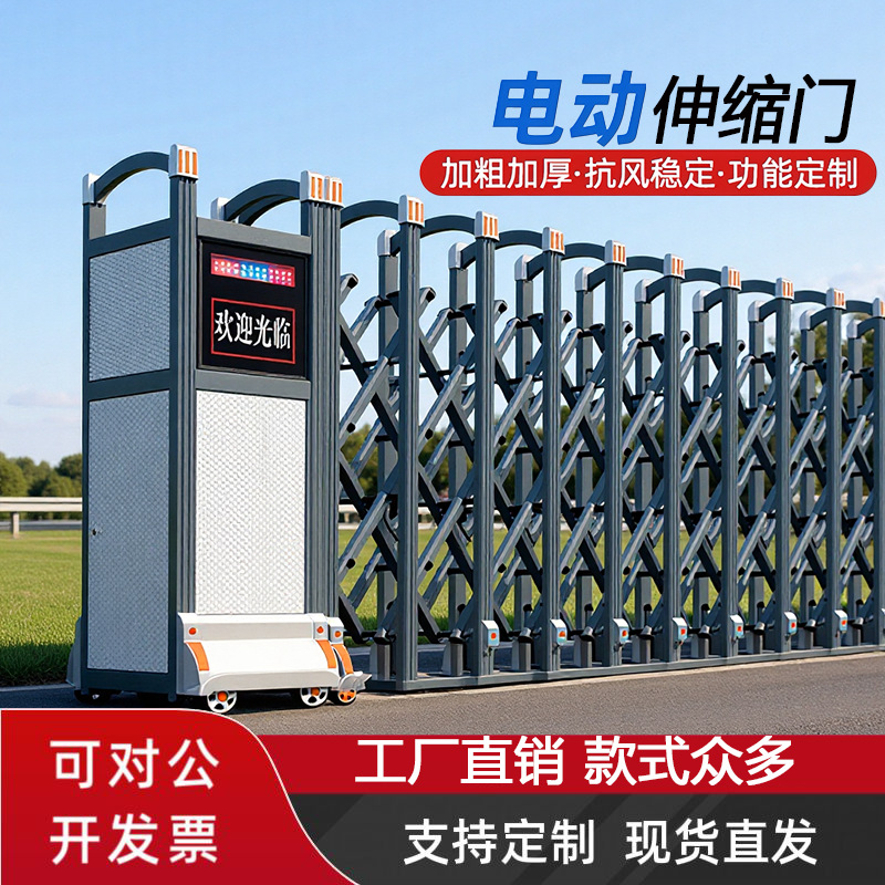 电动伸缩门不锈钢伸缩电动大门学校单位工厂工地自动门门铝合金门