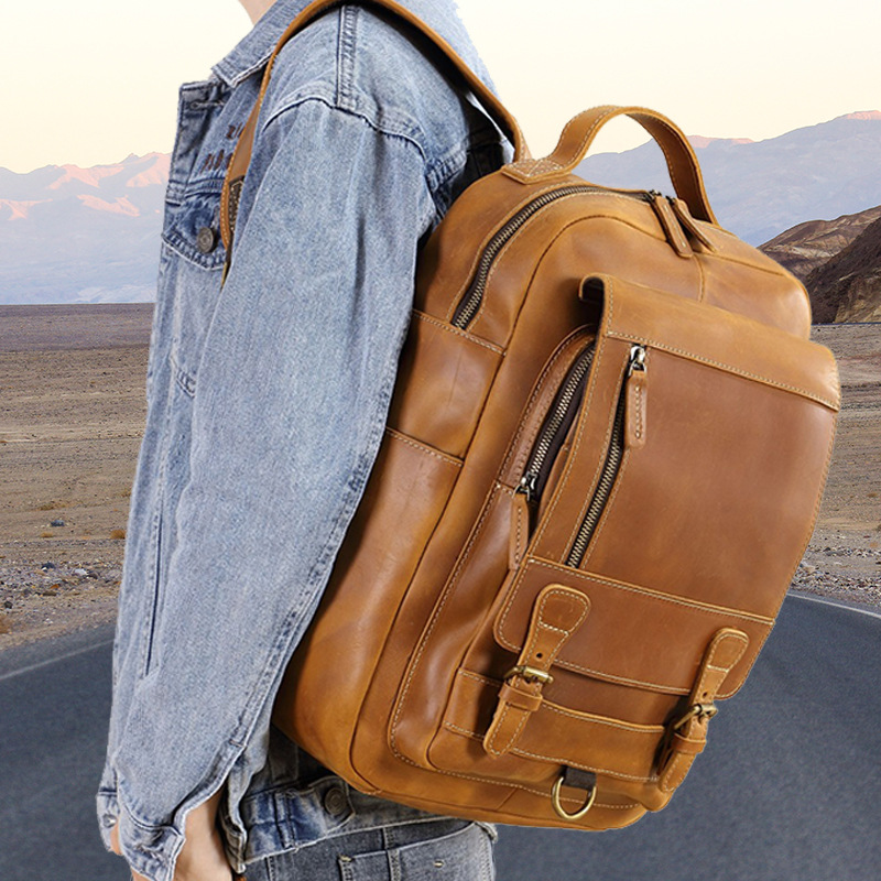トップ層牛革の個性的なリュックサック本革男性用カバン