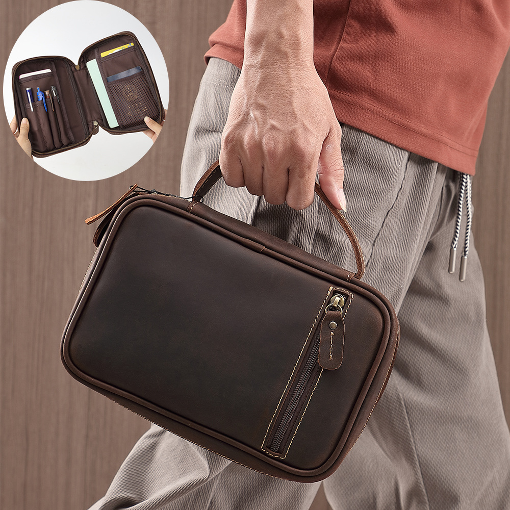 アマゾン本革手提げ収納バッグトップ層牛革聖経バッグ狂馬皮文房具袋外出証明書パスポートバッグ