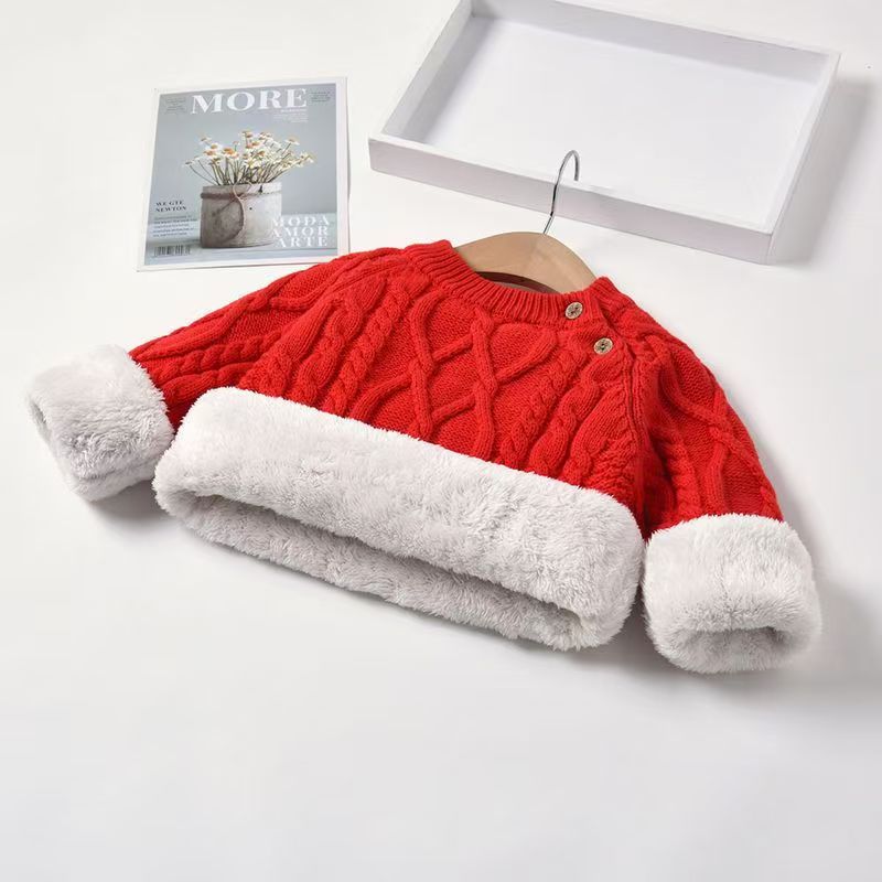 赤ちゃんのセーターの男女の子供のセーターの中で小さい子供のベルベットの厚い底のシャツの保温のニットのプルオーバーのセーターの糸