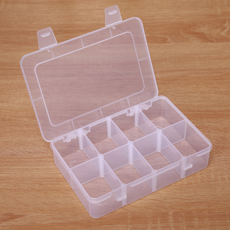 販促pp透明ダブルボタン8格アクセサリー収納ボックス電子部品整理プラスチックボックス小道具包装ボックス