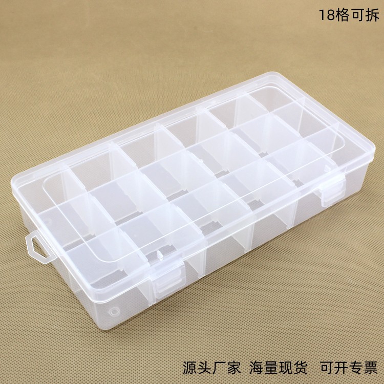 Pp透明18格取り外し可能蓋付き収納ケース長方形丸珠アクセサリーケース金物工具プラスチックケース工場