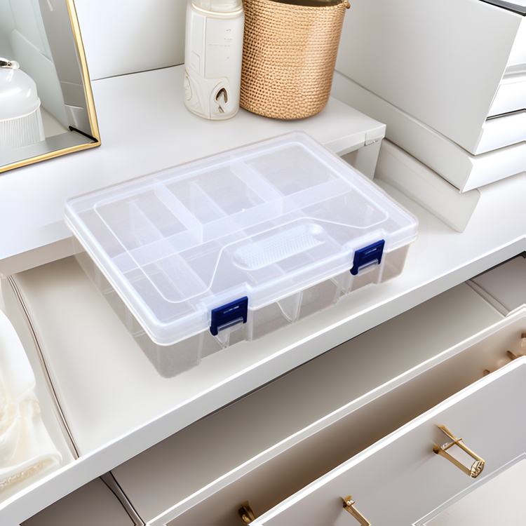 販促pp透明大サイズ厚手ダブルバックル10格収納ボックス電子部品ツール自動車部品プラスチックボックス