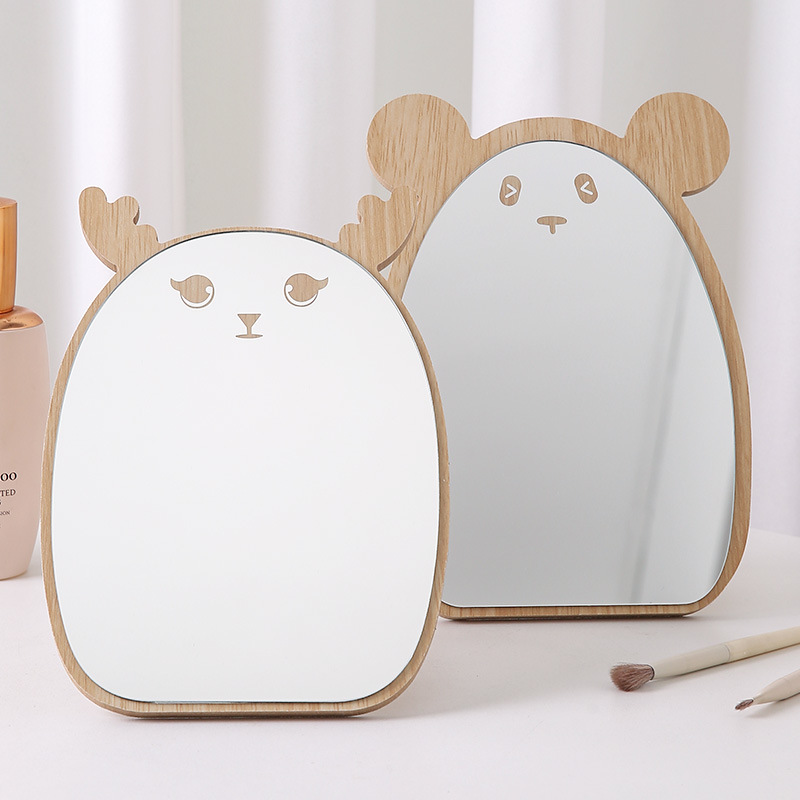 木製の化粧鏡漫画の熊のデスクトップのデスクトップの片面鏡のレトロな折りたたみの美しい化粧の化粧の化粧の化粧の化粧の化粧のお姫様の鏡