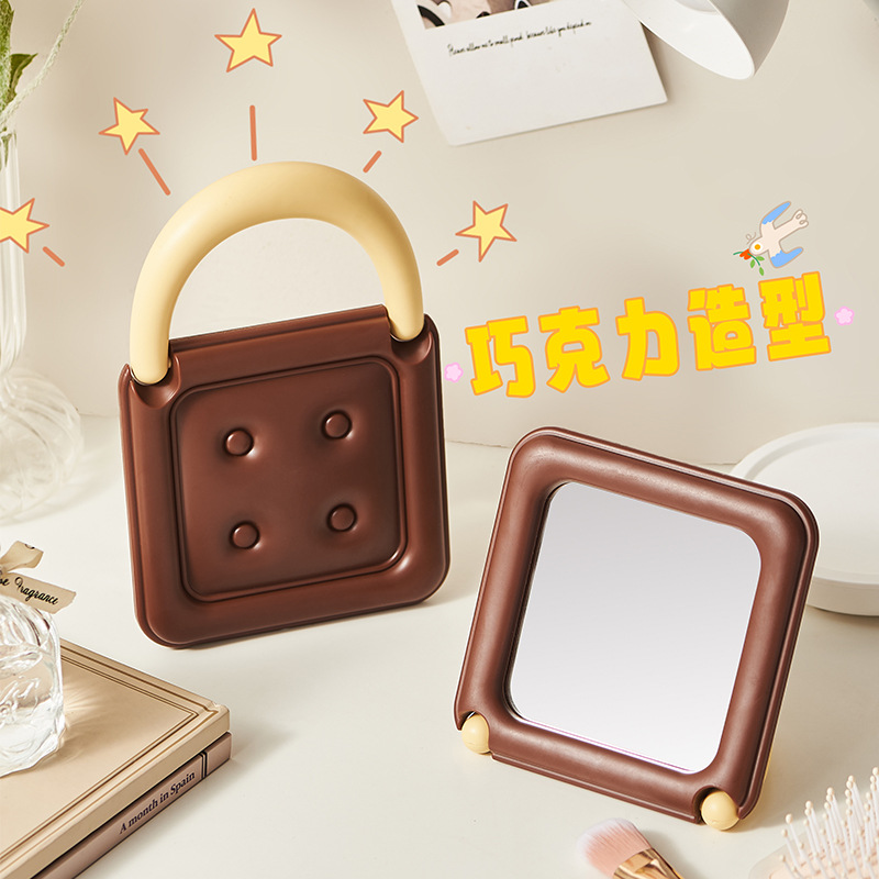 ポータブル折りたたみ式化粧鏡チョコレートデスクトップ片面プリンセスメイクアップ角型ミラー壁面壁掛け