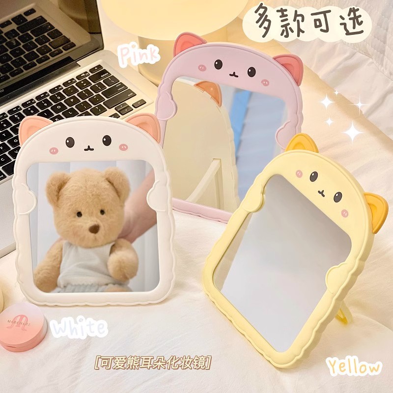 Ins風折り畳み化粧鏡美化粧化粧学生寮デスクトップデスクトップはプリンセスミラー猫耳化粧鏡を立てることができる