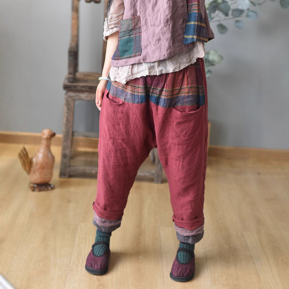 十里/オリジナル春秋亜麻女装色織亜麻布崩れ落ちズボン個性文芸カジュアル股間ハーレムズボン