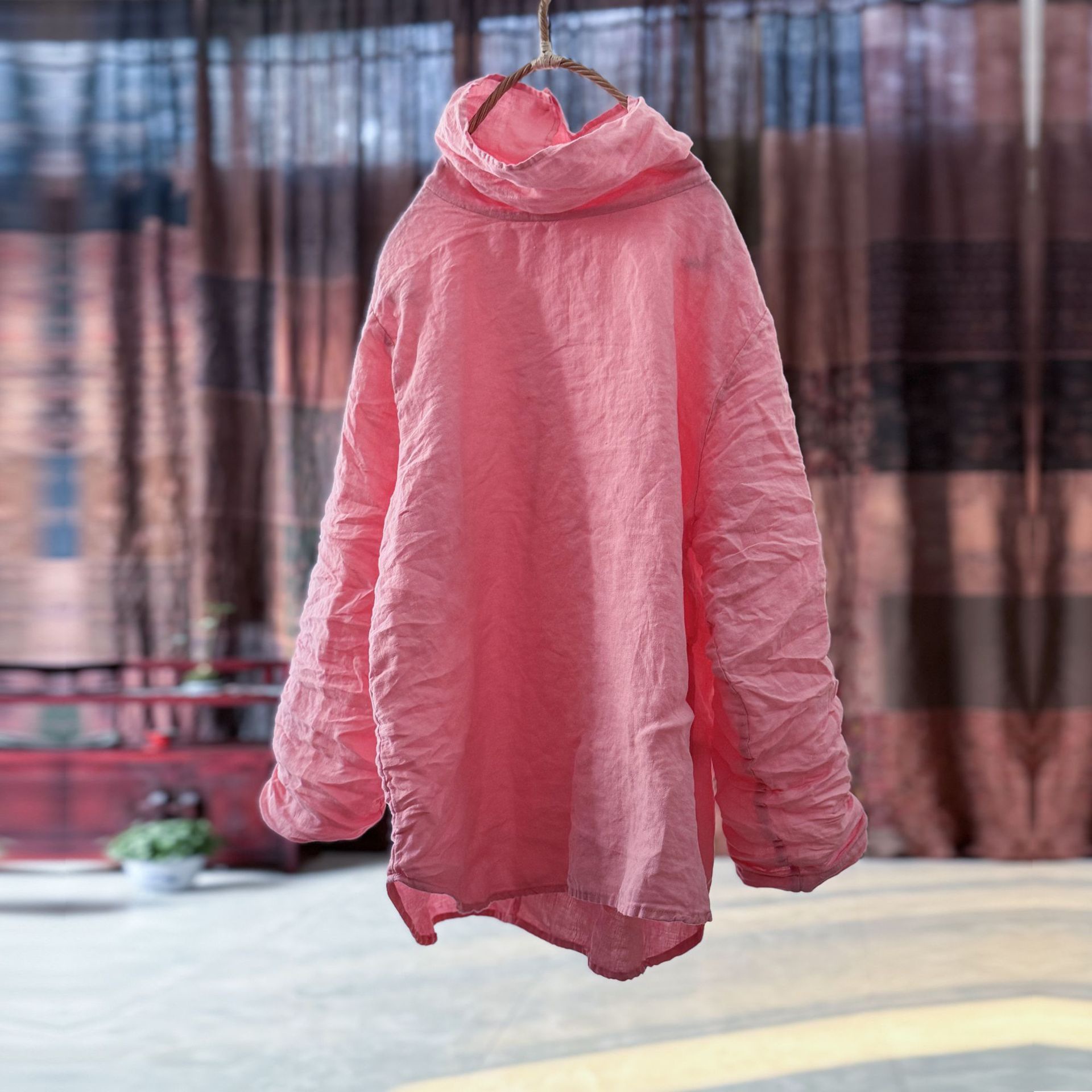 4390オリジナル高品質水洗い亜麻の山の襟の底のシャツの文芸のレトロな亜麻の高襟の大きいサイズのシャツ