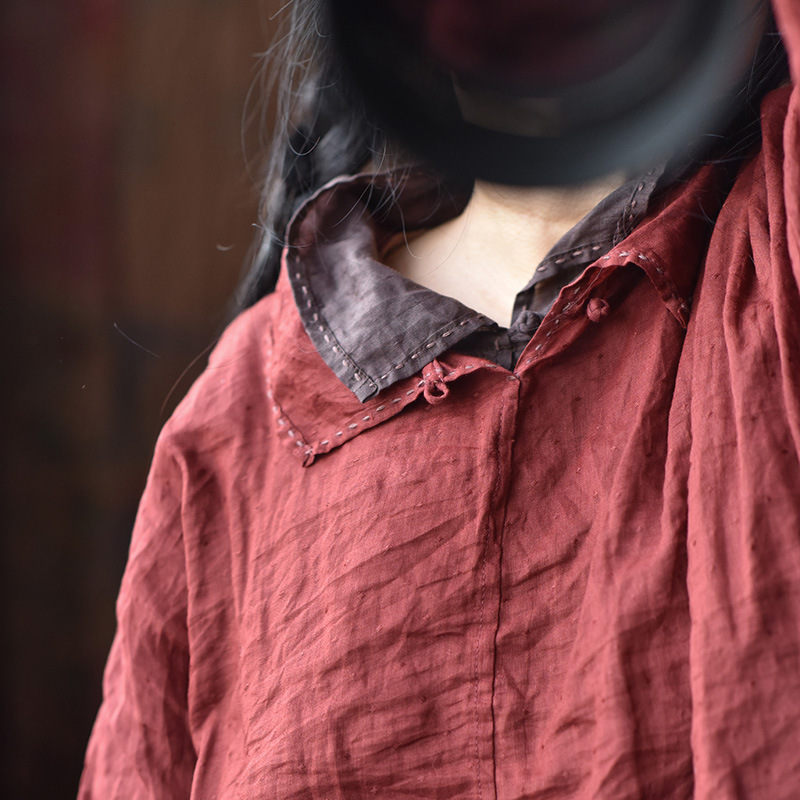 4332オリジナル高温水洗い亜麻上着女性ショートコート春夏モデルレトロゆるい文芸麻シャツ