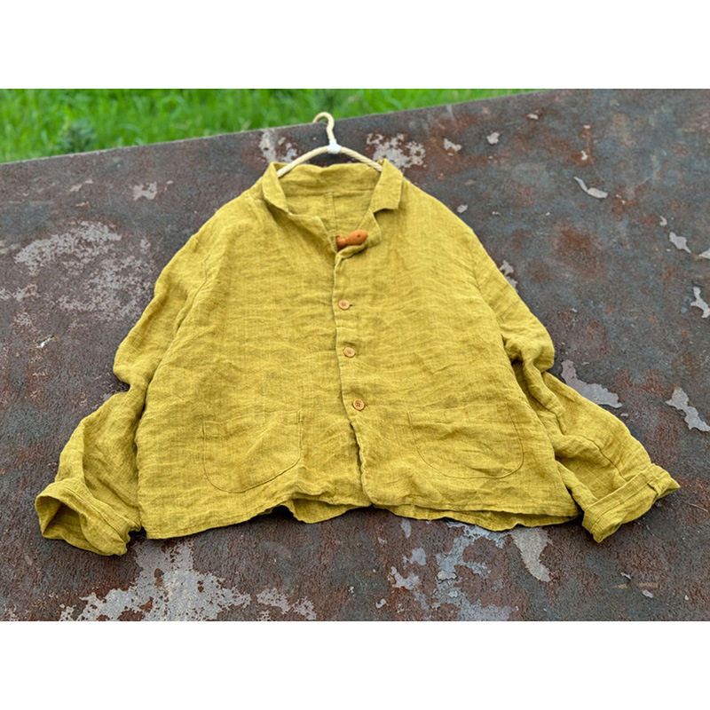 4360高品質砂洗色織亜麻オリジナルゆるい短いスーツ春夏スタイル文芸コート