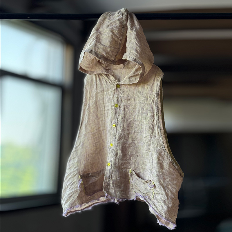 4357オリジナル高温水洗い色織リネンカジュアル帽子付き馬クリップゆったりカーディガン日焼け止めノースリーブベスト