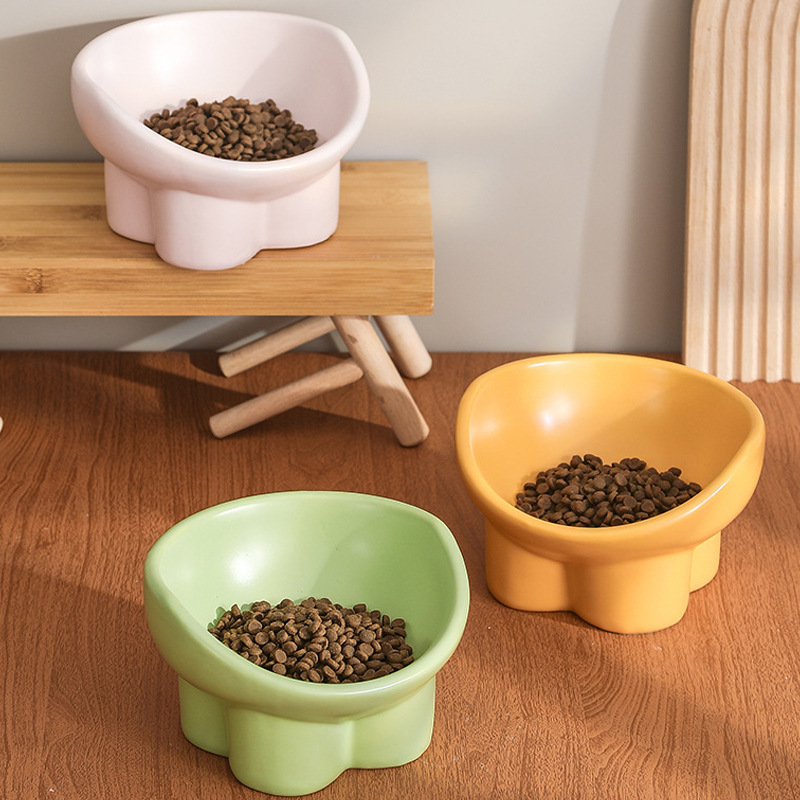 象の足の碗のペットの碗の陶磁器の碗の猫の碗の高い足の碗の斜めな口の首の碗はひっくり返ることを防ぎます。