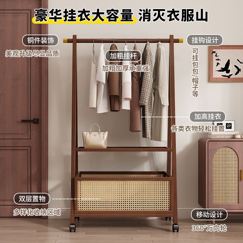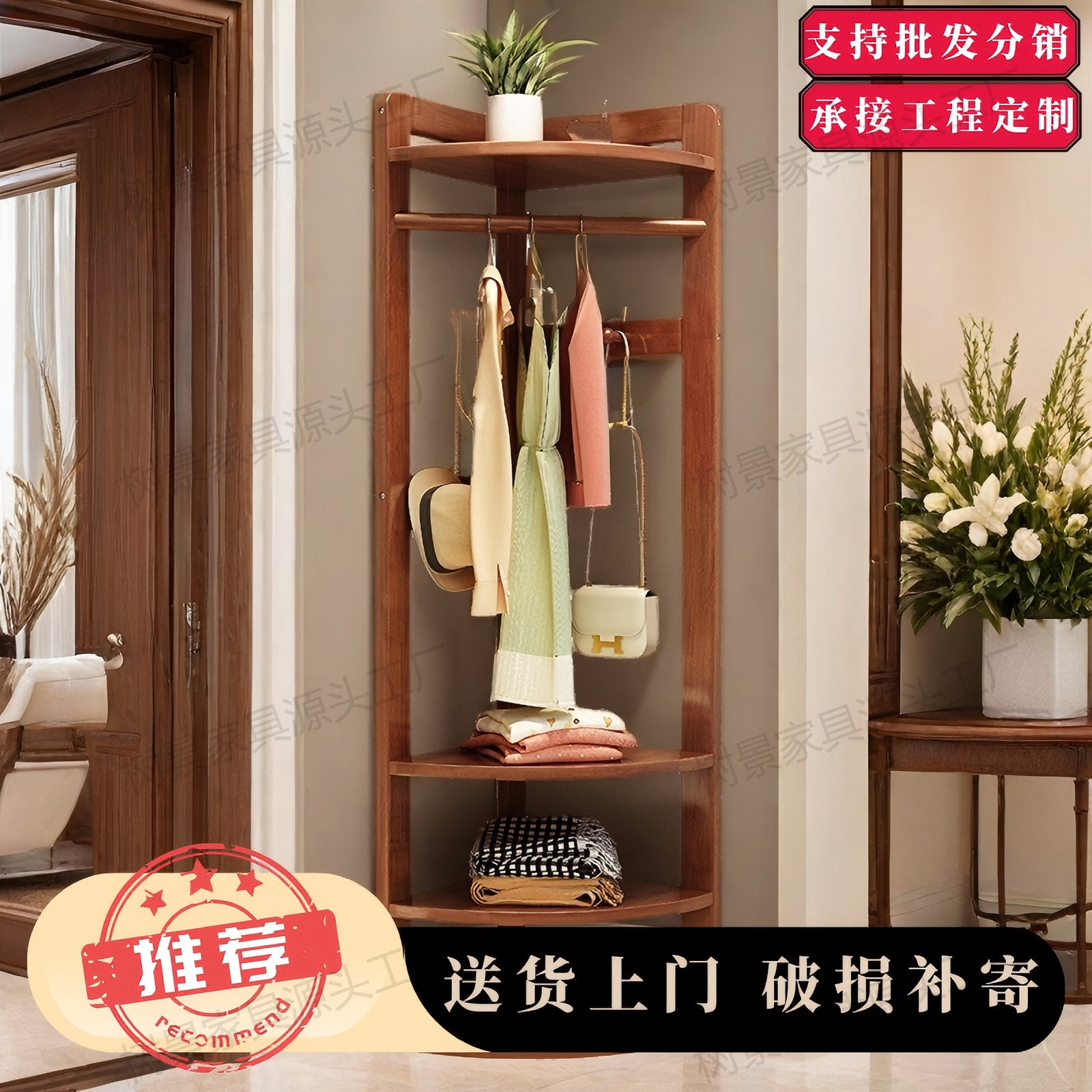実木コーナーコートラックの床置きコートハンガーの優雅なデザインと実用機能を併存しています。