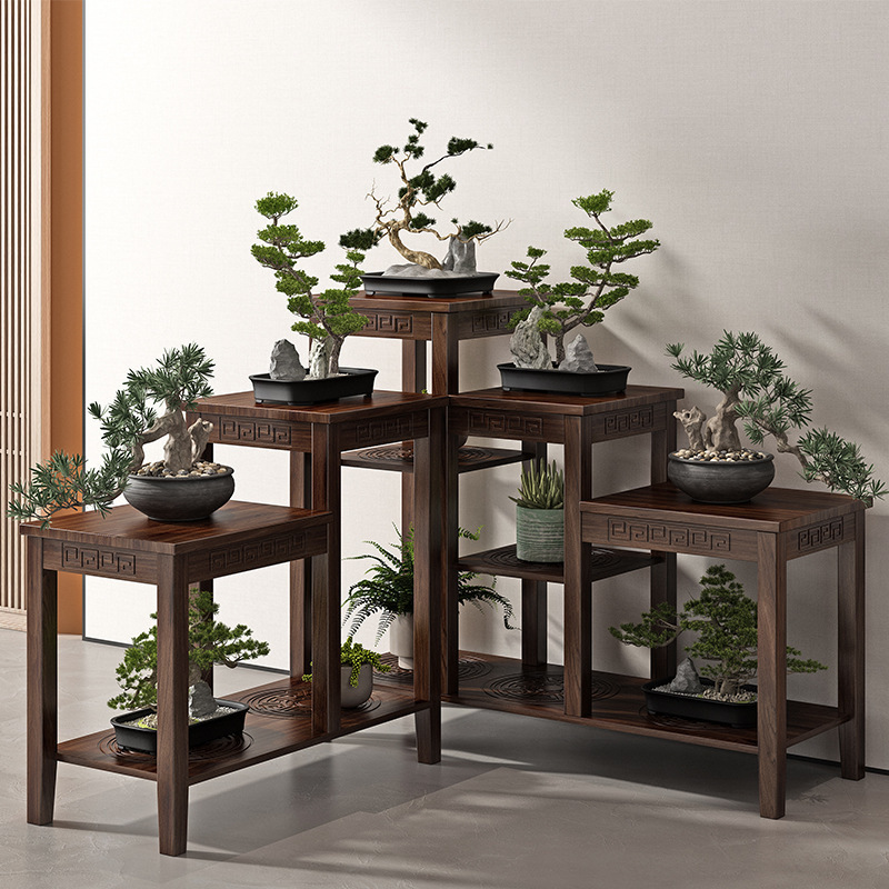 家庭用客間床置き式花棚植木鉢ブラケット実木置物棚新中国式花台植物置物棚新