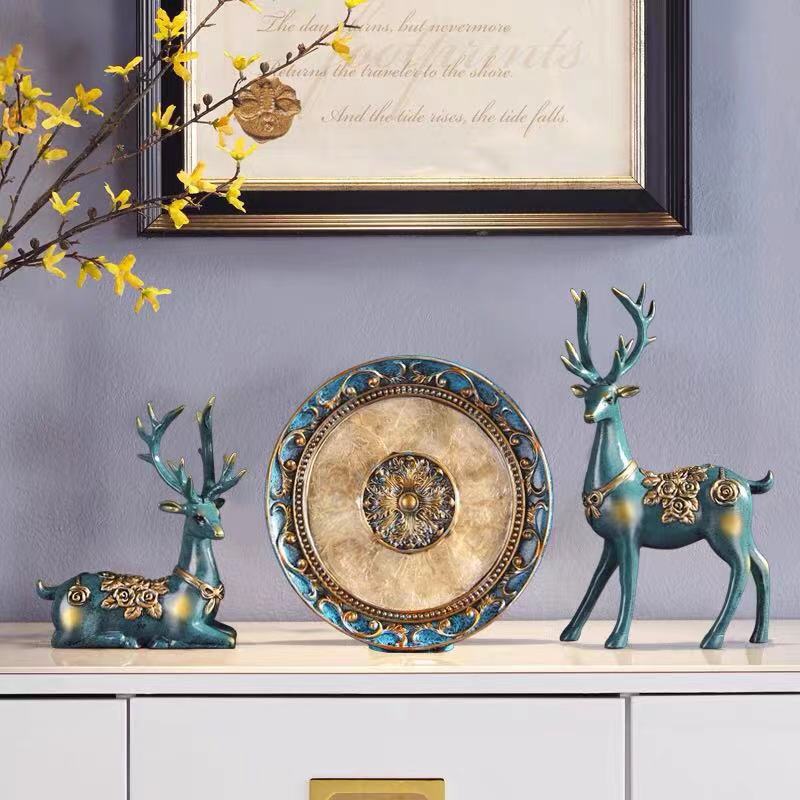 玄関の酒場のリビングルームの招財鹿屏風カバーの3つの置物の引っ越しの贈り物のサイドキャビネットとアクセサリー