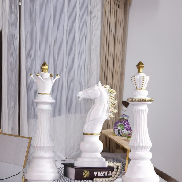 チェスの書斎の客間の酒場の展示室の装飾は王の後で馬の樹脂の工芸品を並べます。