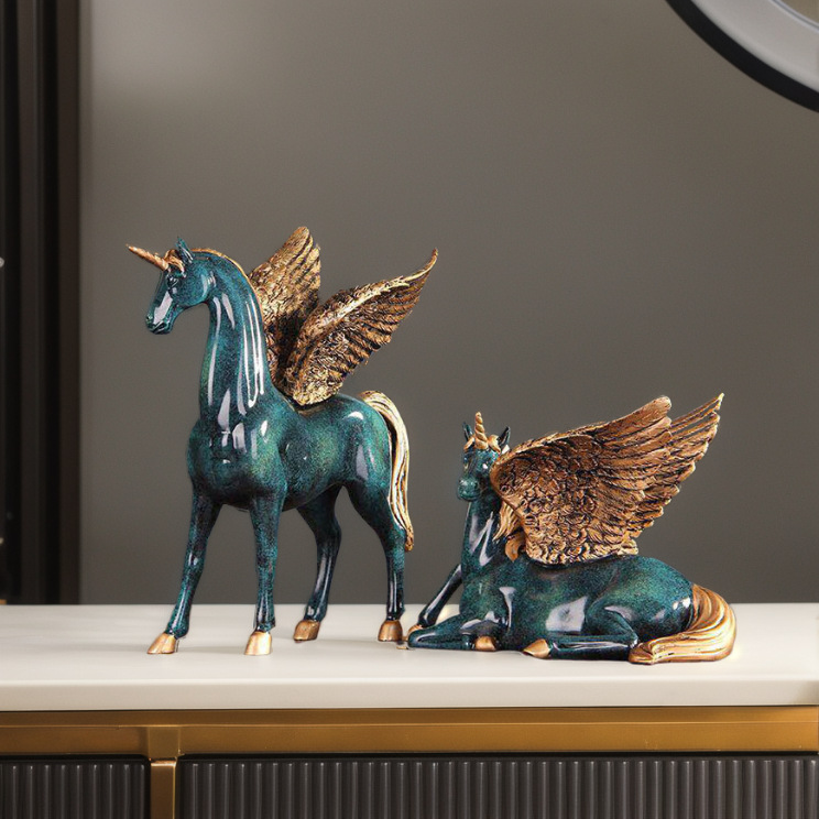 アメリカンレトロホーム装飾品ユニコーン飛馬樹脂工芸品リビング玄関オフィス屋内置物