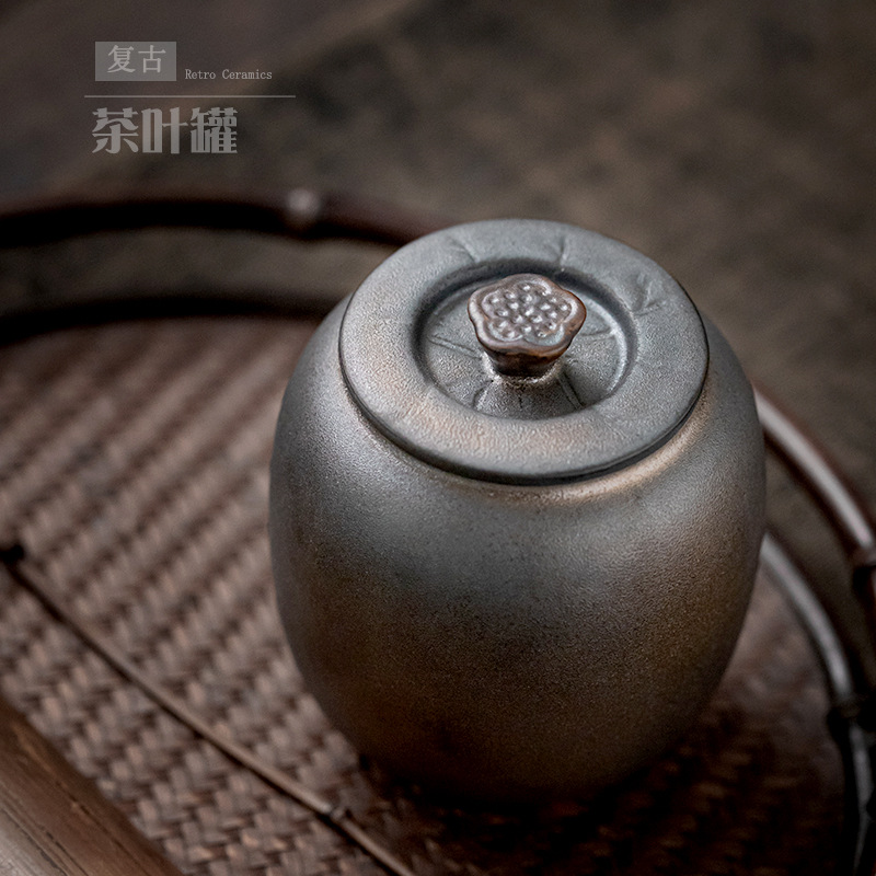 金彩レトロ陶器茶缶 家庭用薪風茶缶 密封缶 茶葉保存缶 茶葉包装 茶倉 カスタムメイド