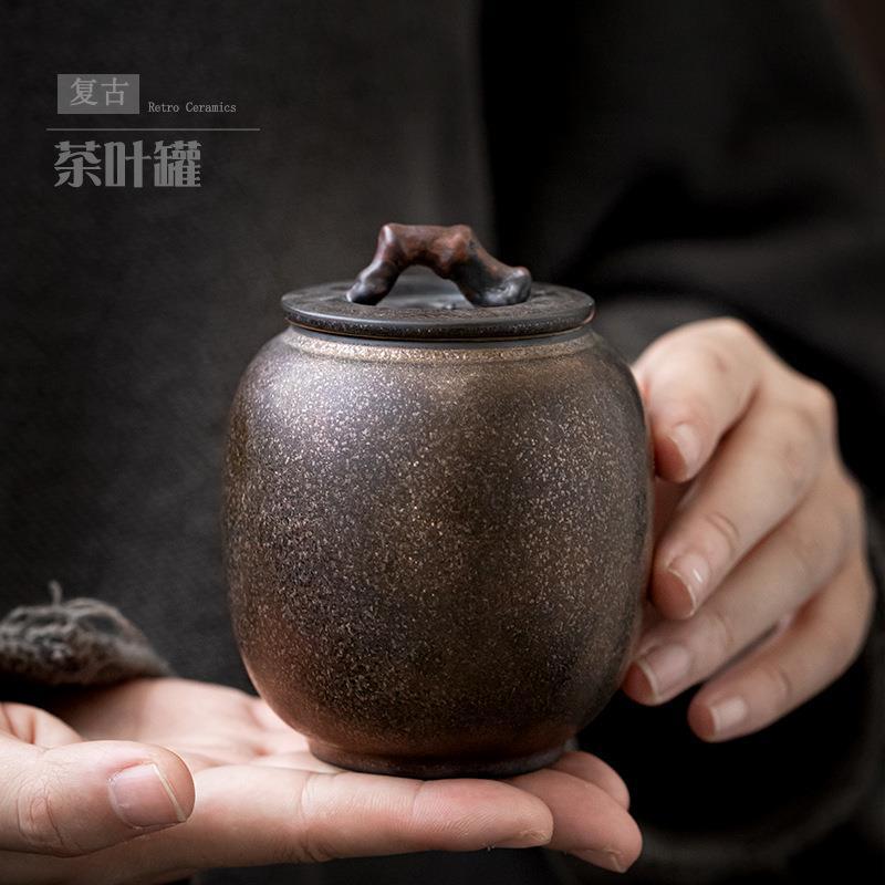 ジャイイン レトロセラミック茶缶 家庭用 模造薪焼き茶缶 醗茶缶 茶保存缶 茶葉包装缶 カスタムメイド