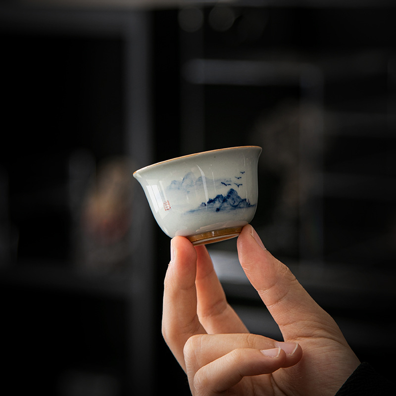 手描き陶磁器カップシングルカップレトロ青花磁器品茗杯工夫茶器家庭用お茶カップ個人カップ