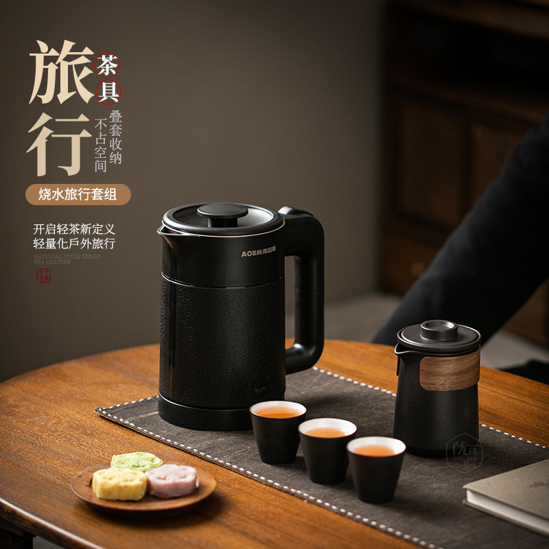 旅行用ポータブルトラベルティーセットケトル付きクイックカップ1ポット3カップ企業ギフトお土産