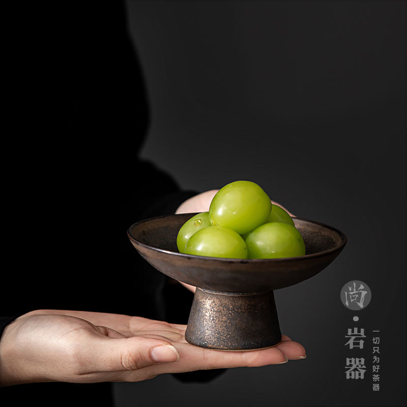 レトロな陶磁器のお茶の皿の高い足の果物の皿の日本式の家庭用のお菓子の皿のお菓子の皿の茶道の部品のお菓子の皿