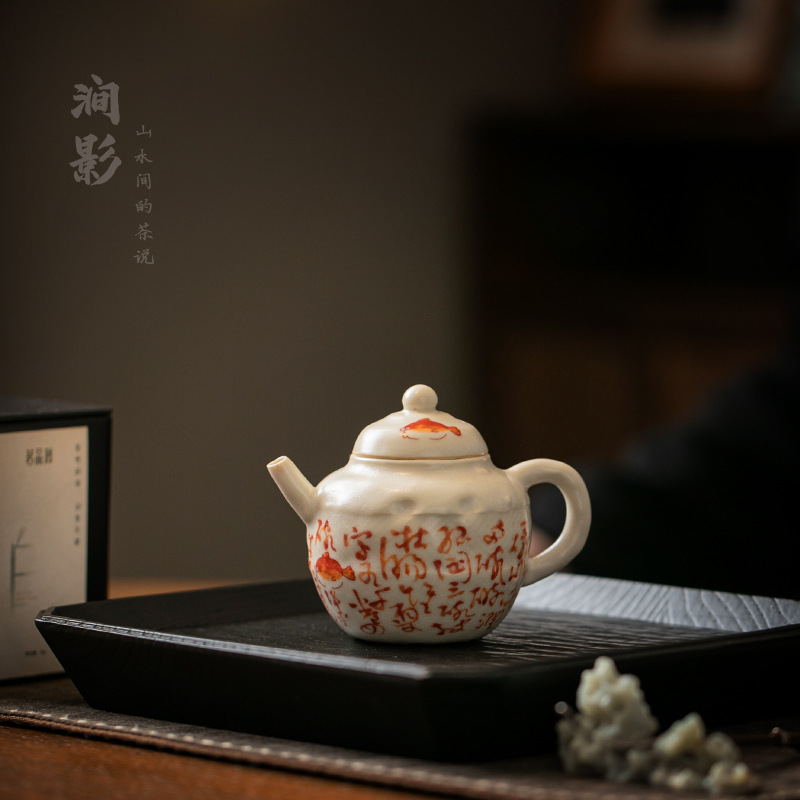 家庭用工夫ティーポット創意釉薬中彩桂魚手掴み壺フィルタ付き小単壺個人専用陶壺卸売り