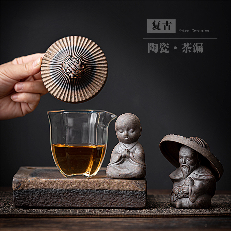 レトロな陶磁器のお茶はお茶を漏らして濾過します。