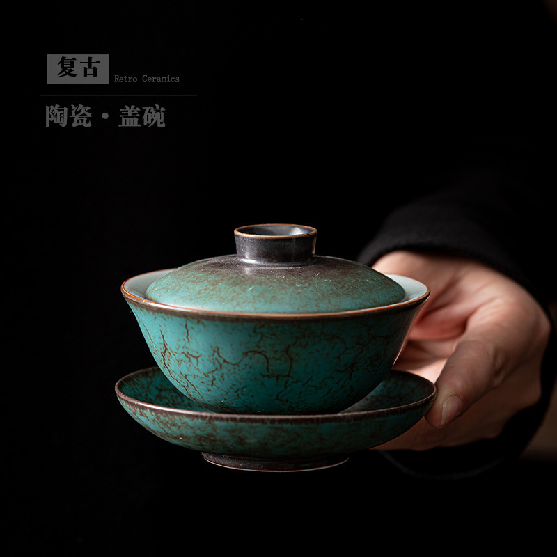陶磁器の蓋の碗のお茶の杯の日本式の家庭用の3才の碗はお茶の杯の祖先の母の緑の工夫の茶器のお茶を浸します。