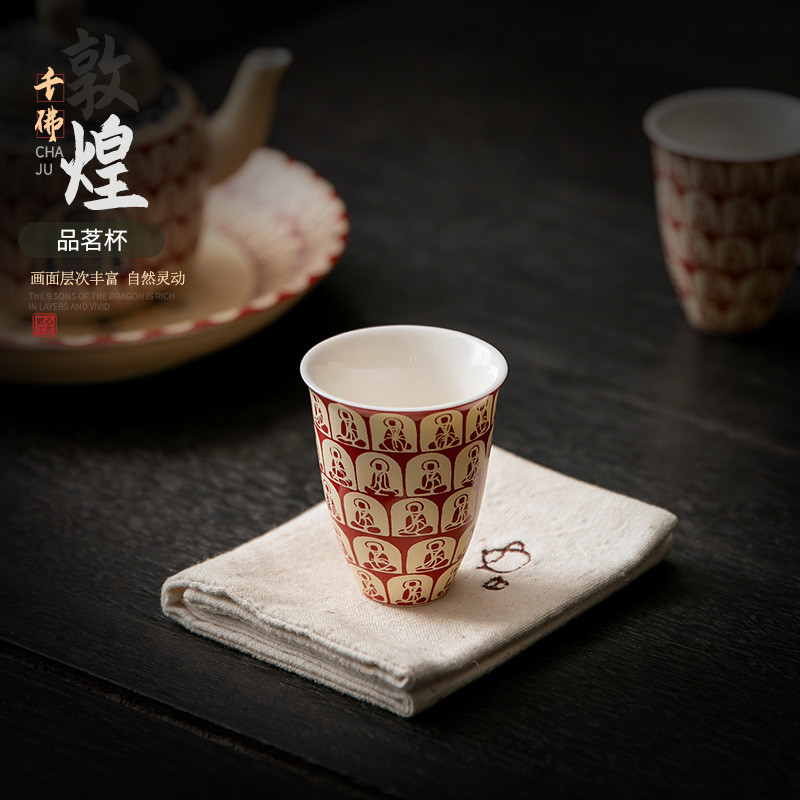 敦煌千仏陶磁器の工夫の杯の白磁の個人はお茶を飲みます。