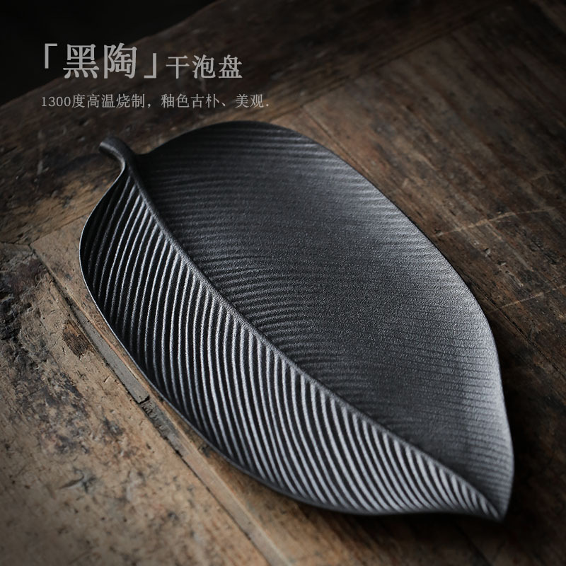 渓谷影日本式黒陶乾泡茶盤レトロ陶磁器茶盤家庭用小茶台現代シンプル茶トレー携帯