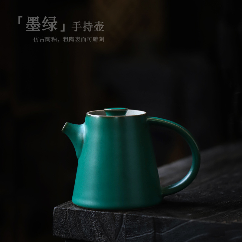 谷間の影の日本式のティーポットの家庭用の工夫のティーポットの手は壺の復古の半手作りの陶壺の単壺の陶磁器をつかみます。