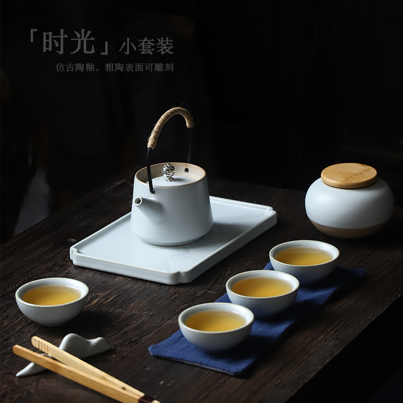 工夫茶器セット陶磁器日本式携帯旅行茶器一壺四杯茶盤小セット家庭用シンプル