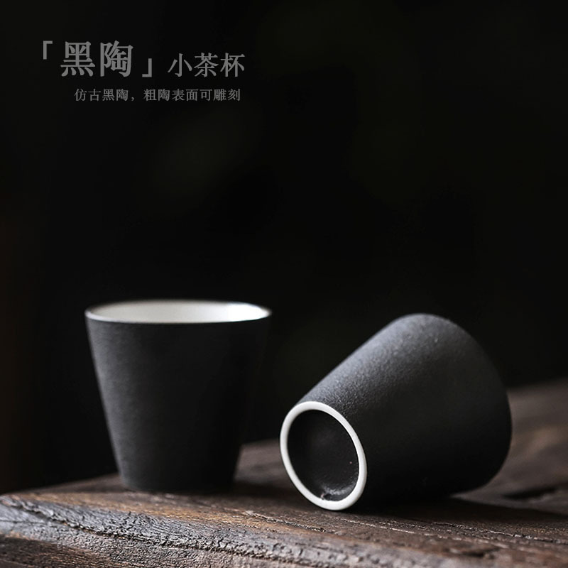 陶磁器の工夫のお茶の杯の復古の黒陶の小さい茶碗の粗い陶器のお茶の用品の茗杯の家庭用の茶道の主人の杯の単杯