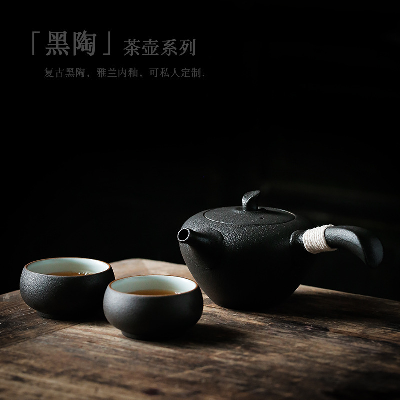 渓谷影復古日本式ティーポット陶磁器工夫茶器小泡ティーポット黒陶単壺陶壺家庭用小壺
