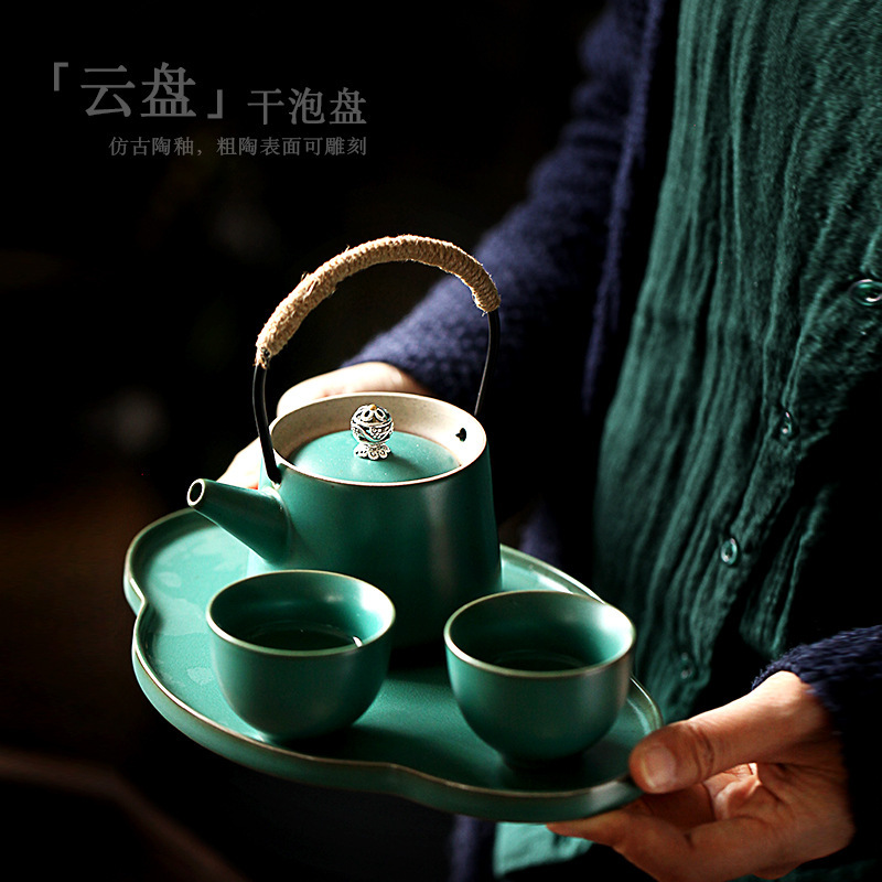 谷間影日本式提梁壺茶器セット家庭用工夫茶器シンプル乾燥茶盤2人茶器小セット