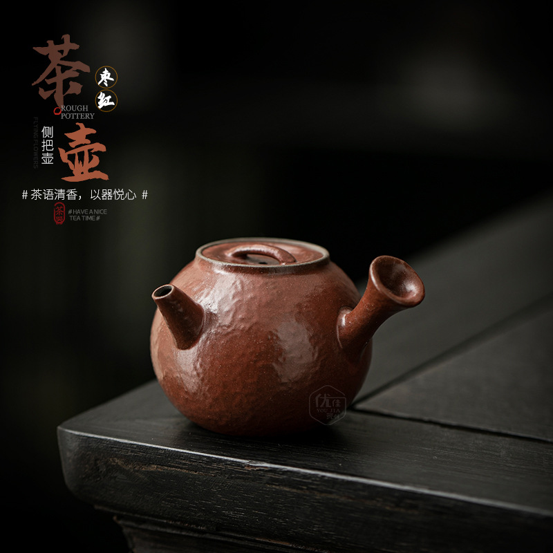 古い岩の泥のティーポットの高級な粗い陶の個人の専用の単一の壺の小さい容量は濾過の側を持って壺の工夫の茶器の陶器の壺をつかみます。