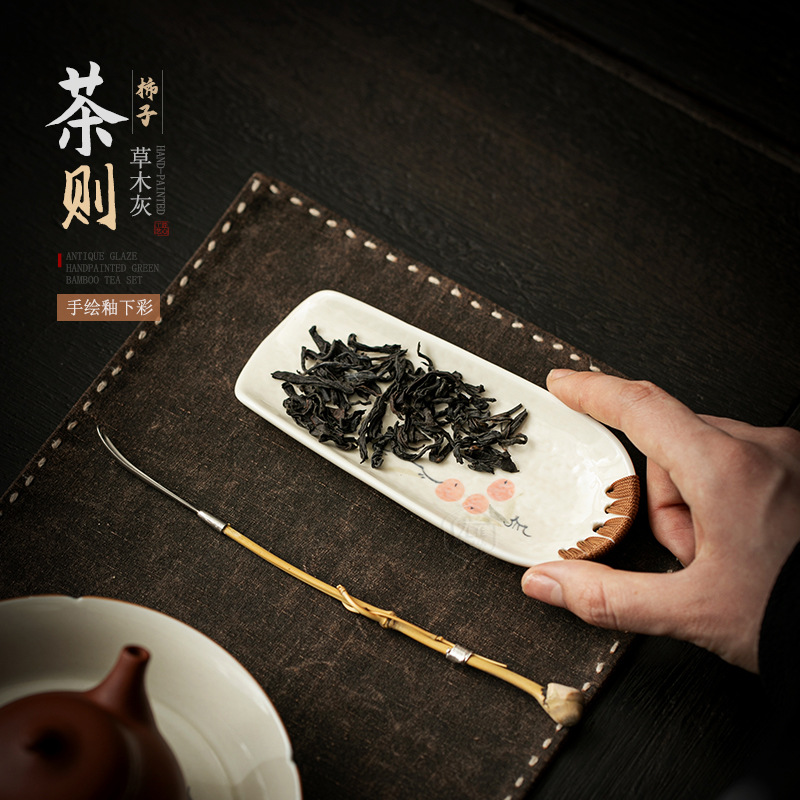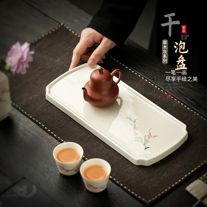 草木灰釉下彩手描きドライバブル皿長方形陶磁器茶皿工夫茶器茶トレー単層茶台