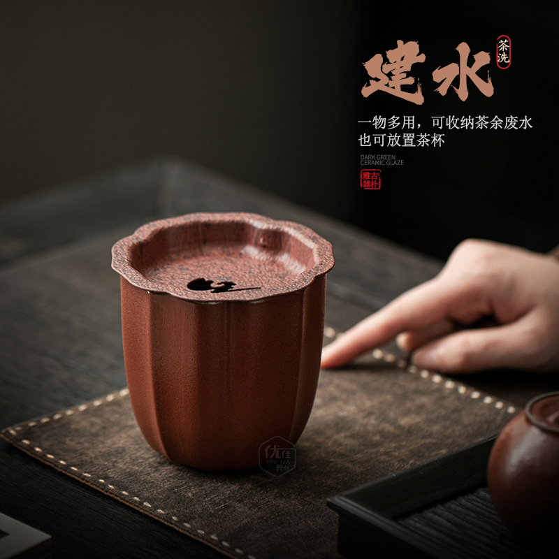 陶磁器の建水はナツメの赤いお茶をかぶせて復古家庭用のお茶のテーブルの廃水のかめの茶のかすの桶の茶道の0をかぶせて水の孟を配合して水洗いします。