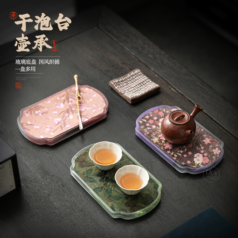 中国式瑠璃茶皿茶席セット小型家庭用ガラスポット承茶トレー国風収納皿乾燥茶台