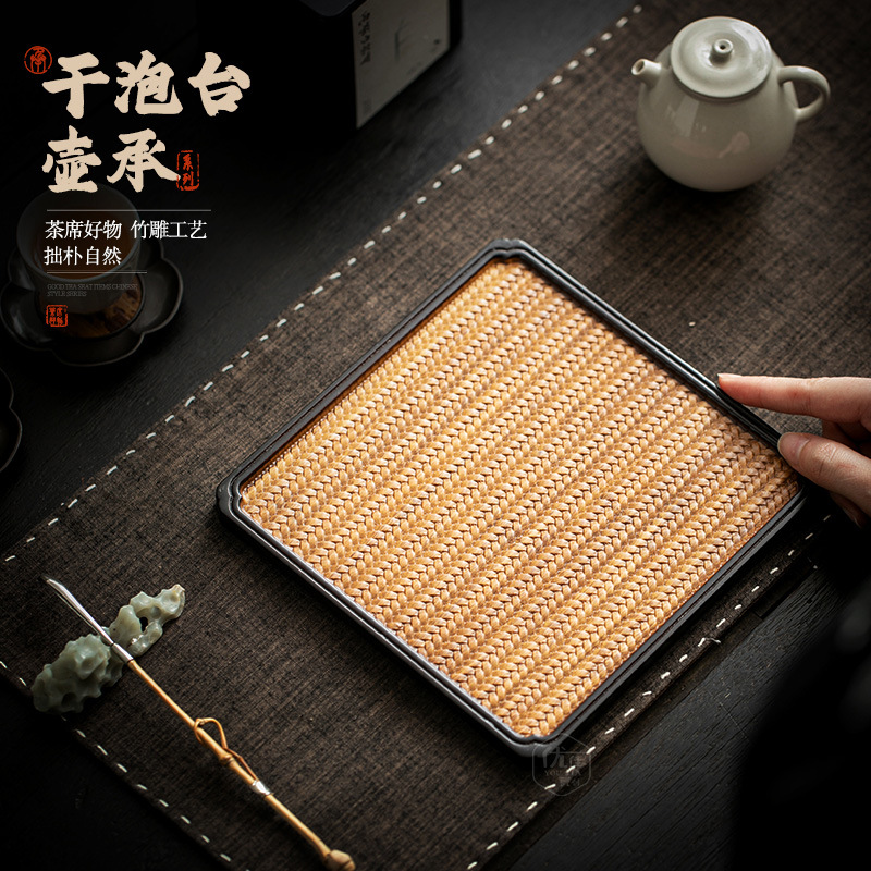 竹製の席の紋様のトレーのティーポットのマットは簡単です。